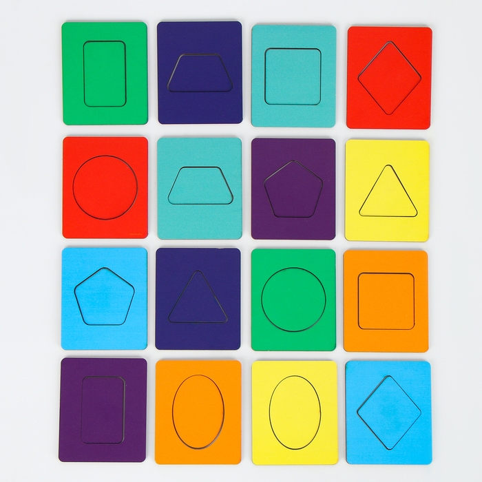 - Переверните досочки, чтобы все фигурки выпали на стол. Покажите малышу, как вставляются геометрические фигуры в прорези дощечек по формам.