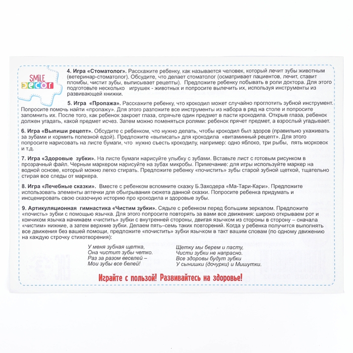 Развивающая книжка «Лечим зубки» идеально подходит для развития памяти, мышления, речи, познавательного интереса к здоровому образу жизни!