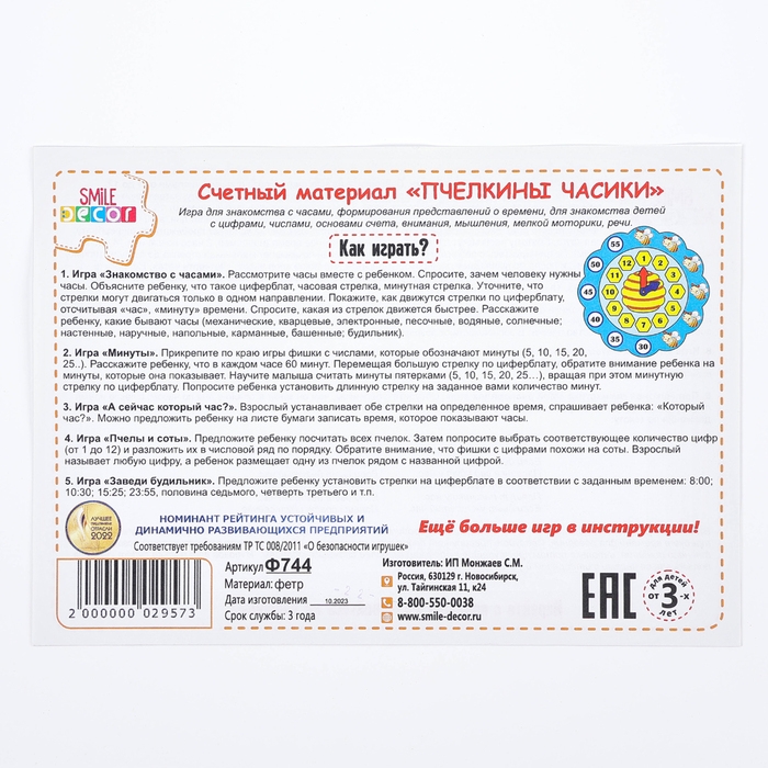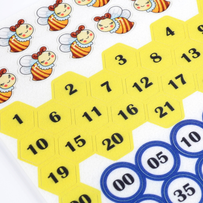 - Игра «Весёлая математика». Используйте фишки с цифрами и пчёлок в качестве счётного материала и для составления простейших математических задач: считайте пчёлок, сравнивайте, составляйте наглядные простые примеры на сложение и вычитание.