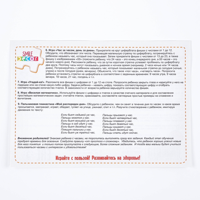 Умение пользоваться часами — это важный навык, который дети начинают осваивать с раннего возраста. Дидактический коврик поможет родителям научить детей понимать время. Также коврик способствует формированию представлений о времени, его периодичности, сменяемости, развитию пространственного и временного восприятий, мыслительных процессов.