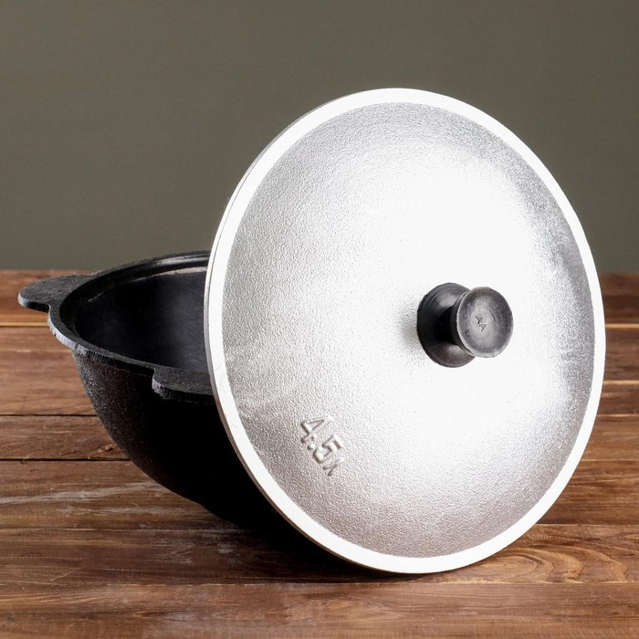 Казан чугунный, 4,5 л, плоское дно, алюминиевая крышка