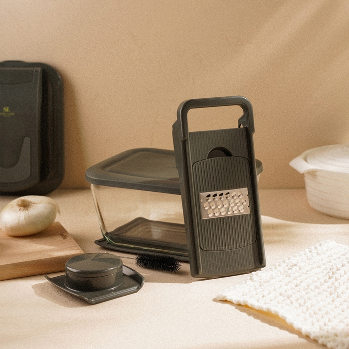 - Удобство использования: контейнер для нарезки и встроенный дуршлаг позволяют легко мыть и сушить нарезанные овощи прямо в процессе приготовления.