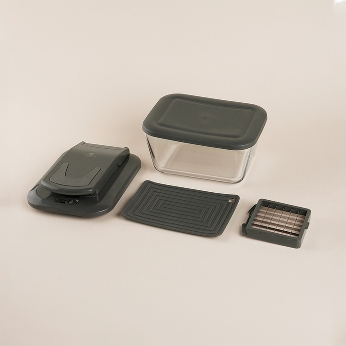 Главное преимущество овощерезки — её универсальность. В комплект входит контейнер для нарезки, который также можно использовать в качестве дуршлага, что упрощает процесс приготовления пищи. Нескользящая ручка обеспечивает комфортное использование, а возможность мытья в посудомоечной машине экономит ваше время и силы.