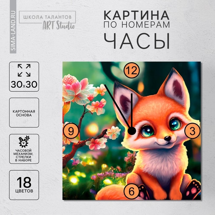 Роспись часов по номерам «Лисичка в лесу», 30 х 30 см