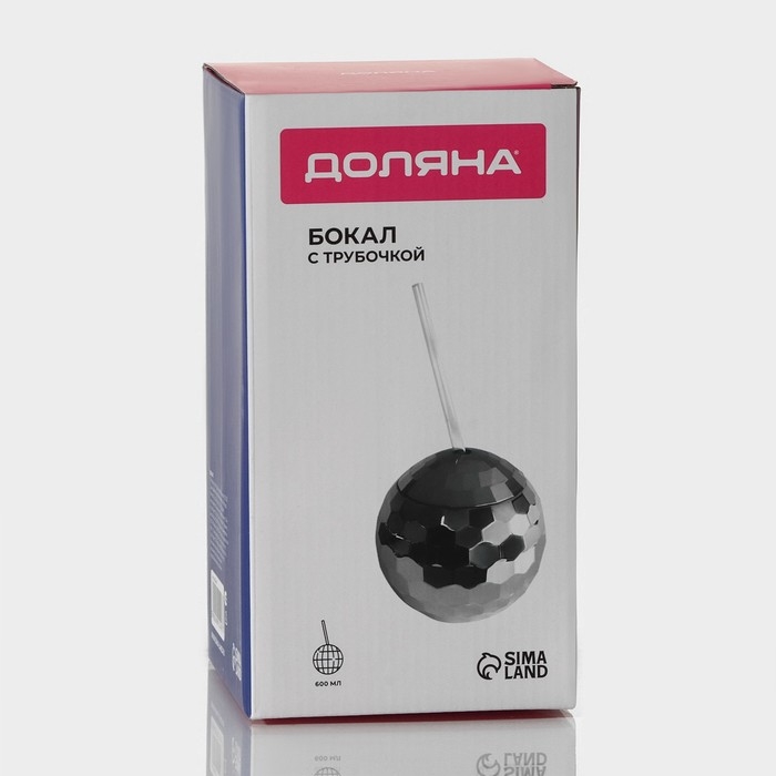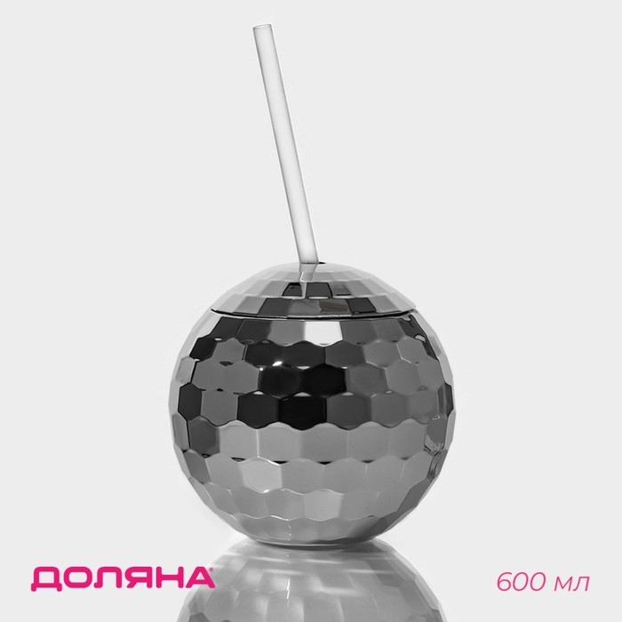 Бокал с крышкой и трубочкой Доляна «Сияние», 600 мл, 11×11×10,5 см, цвет серебряный