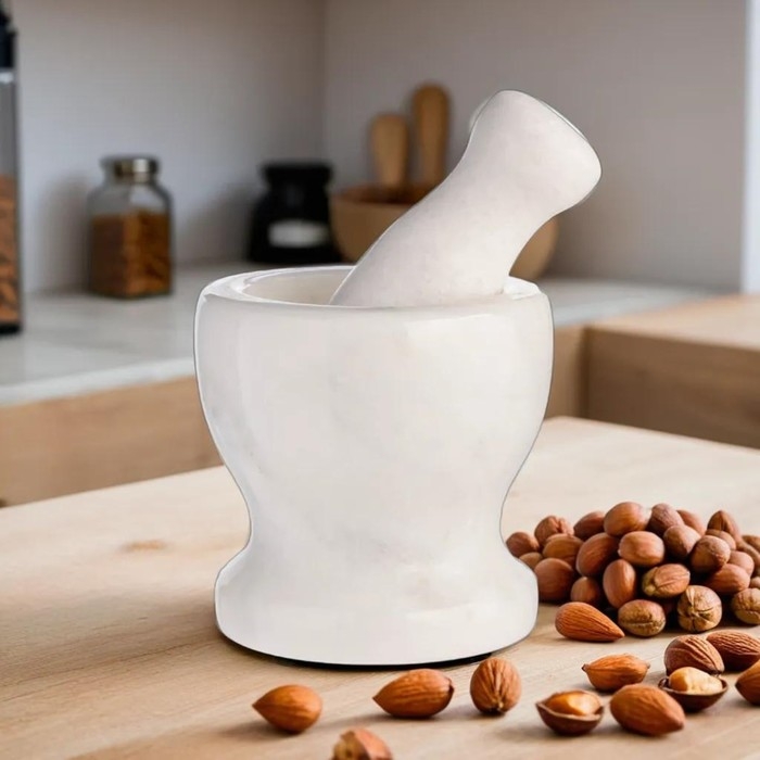 Ступка с пестиком из камня средняя, 250 мл, белая, в коробке