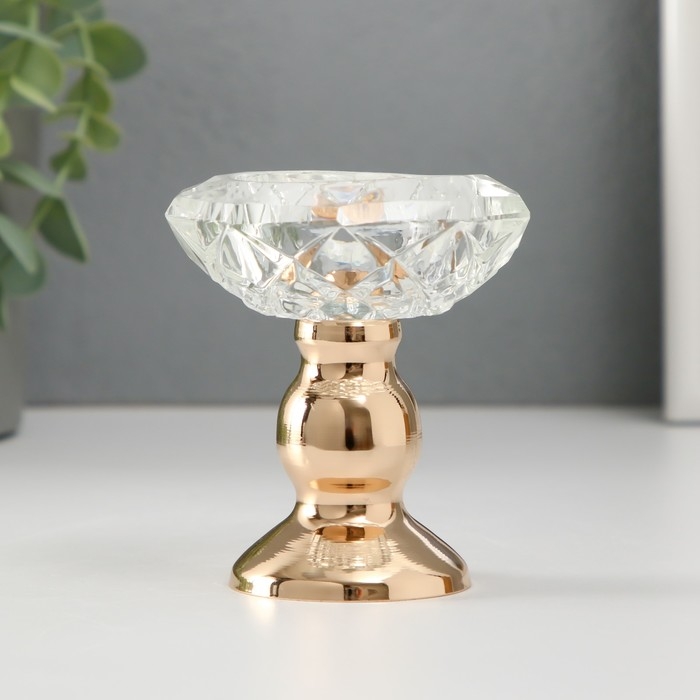 Подсвечник металл, стекло на 1 свечу "Кристальная чаша. Фигурный" d= 5 см золото 8х8х9 см