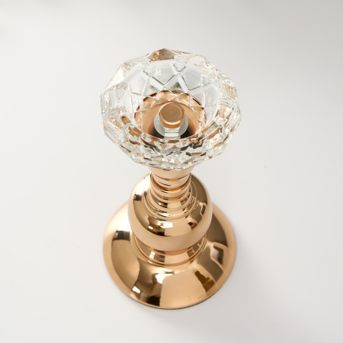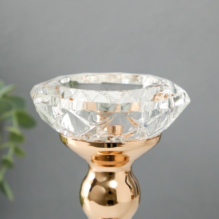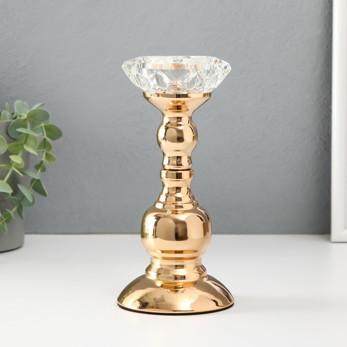 Подсвечник металл, стекло на 1 свечу "Кристальная чаша. Фигурный" d= 5 см золото 8х8х19 см 1019366