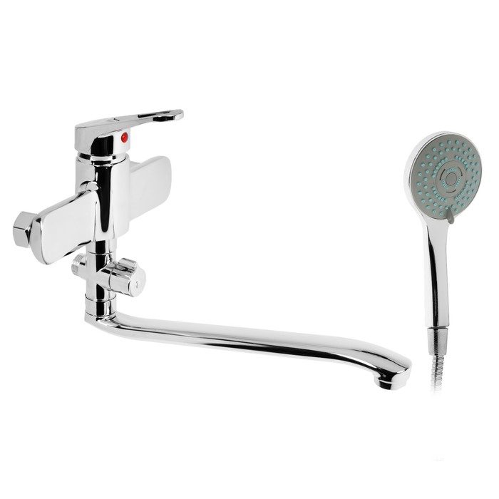 Смеситель для ванны ZEIN Z4116, однорычажный, лейка 5 режимов, шланг, держатель, хром