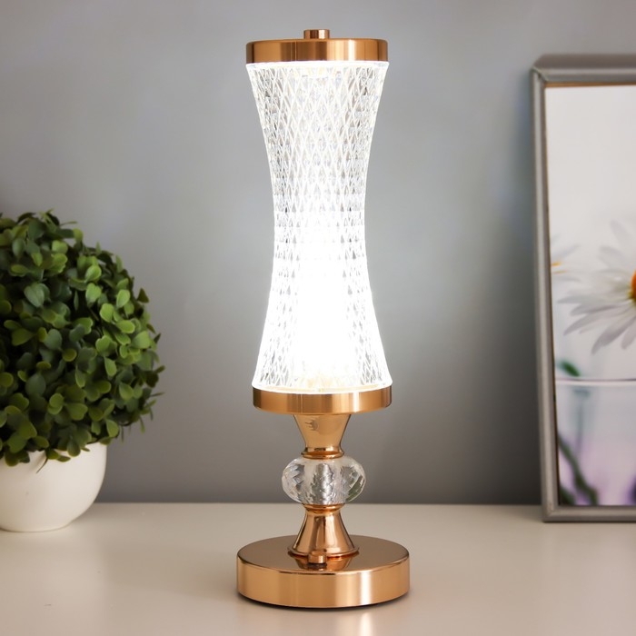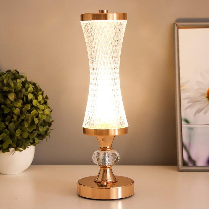 Настольная лампа сенсорная "Билди" LED 3Вт 3000-6000К USB АКБ диммер золото 9,5х9,5х29,5 см 102220