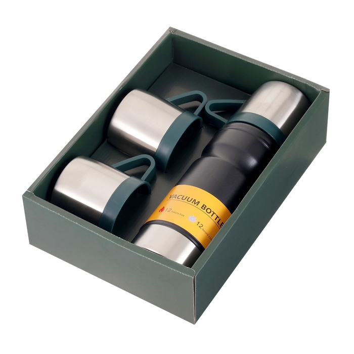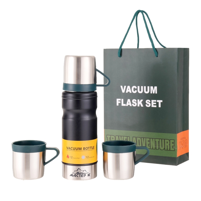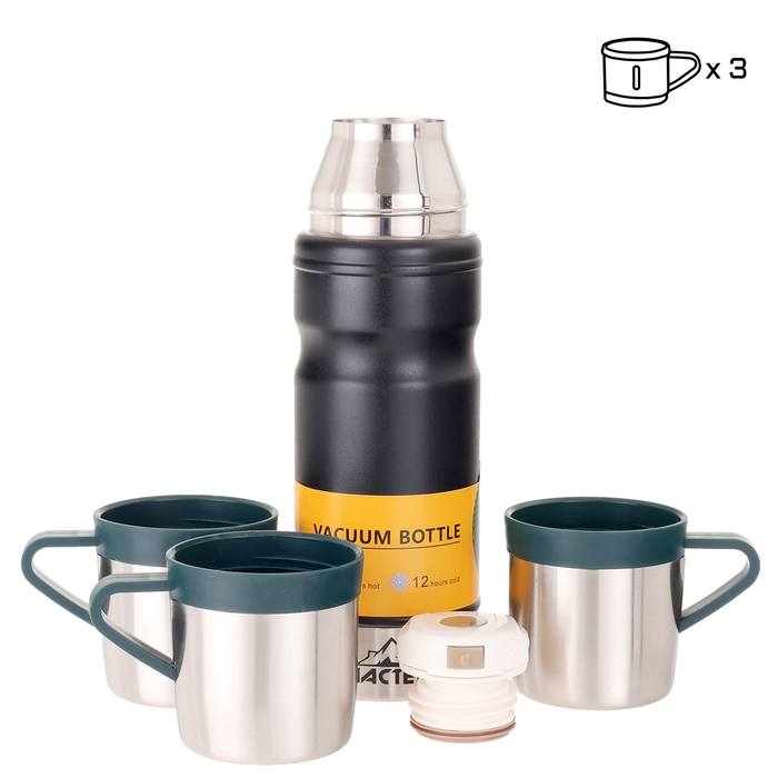 Набор "Мастер К": термос 680 мл и 3 кружки, сохраняет тепло 12 ч, черный