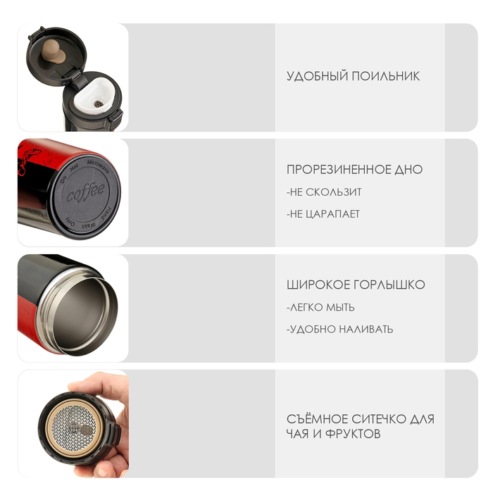 Термокружка для кофе и чая идеальна для офиса, автомобиля, длительных прогулок и детям в школу, станет идеальным подарком мужу, папе, брату или другу на День Рождения, Новый год или любой другой праздник.