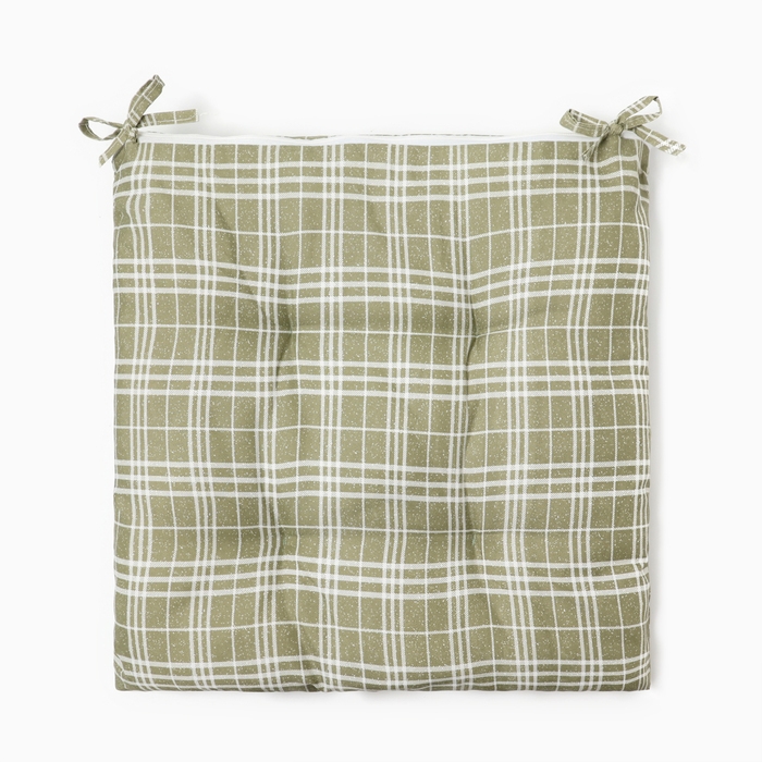 Сидушка на стул Этель "Клетка" цв.хаки, 40х40 см, 100% п/э