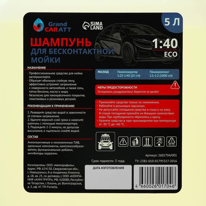 Шампунь для бесконтактной мойки Grand Caratt "Eco", расход 1:25 - 1:40, 5 л 001