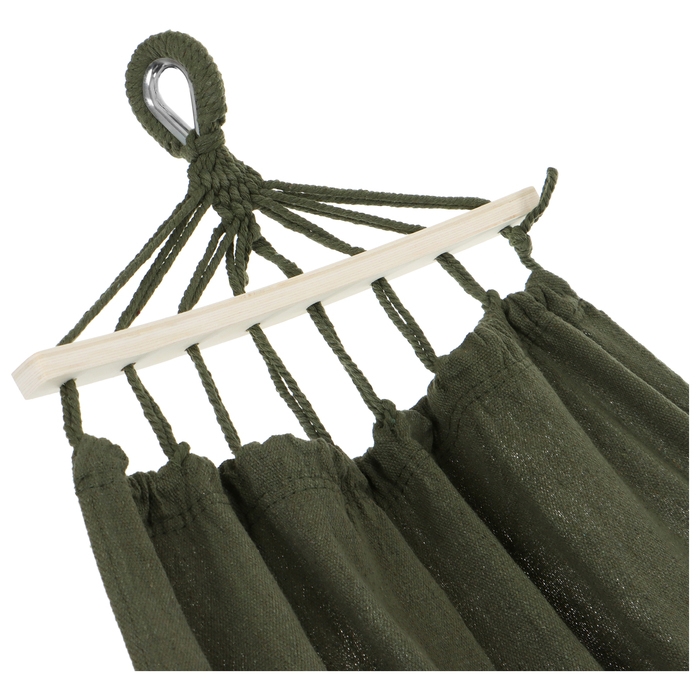 - Модель оснащена двумя деревянными перекладинами, которые предотвращают скручивание гамака.