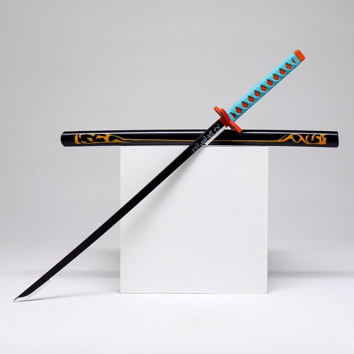 Сувенирное оружие "Катана Нобу" 102 см, черная с голубой рукоятью, пенополистирол