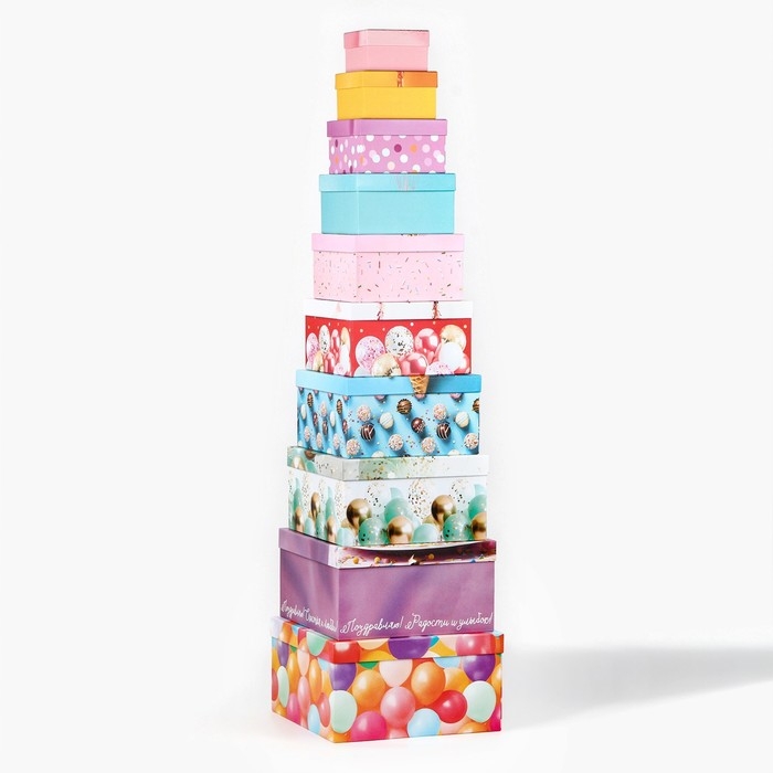 Набор коробок 10 в 1, упаковка подарочная, «Шары», 10.2 х 10.2 х 6‒28.2 х 28.2 х 15 см