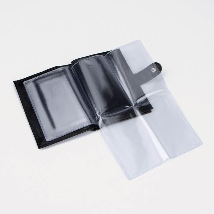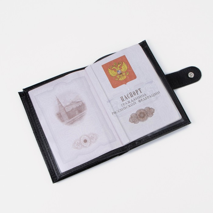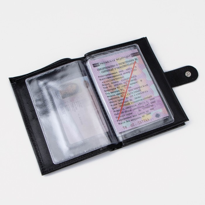 Обложка для автодокументов и паспорта TEXTURA, отдел для купюр, карманы для карт, цвет чёрный