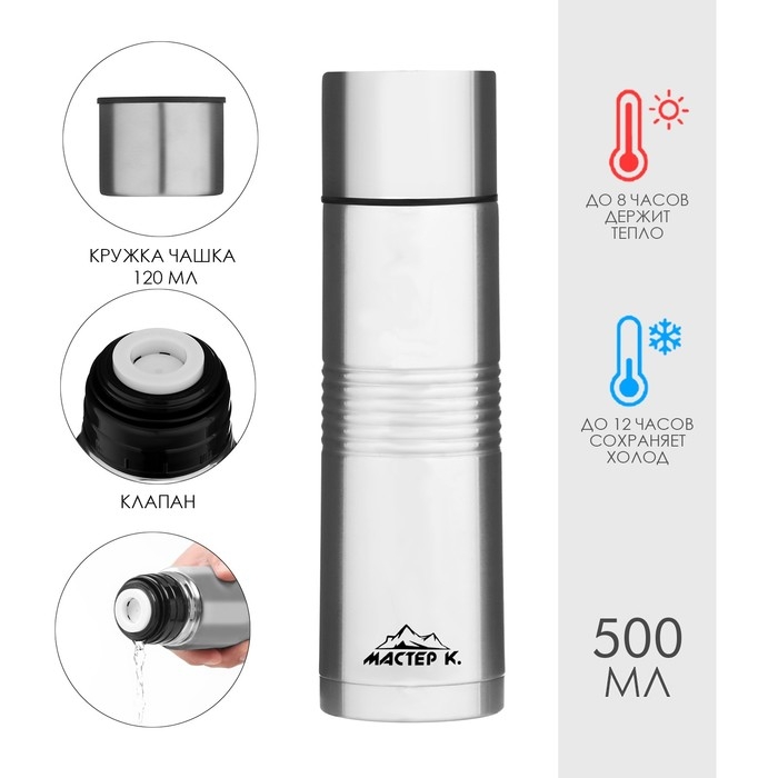 Термос, 500 мл, Топ "Мастер К Лучший", сохраняет тепло 8 ч, 7 х 26 см