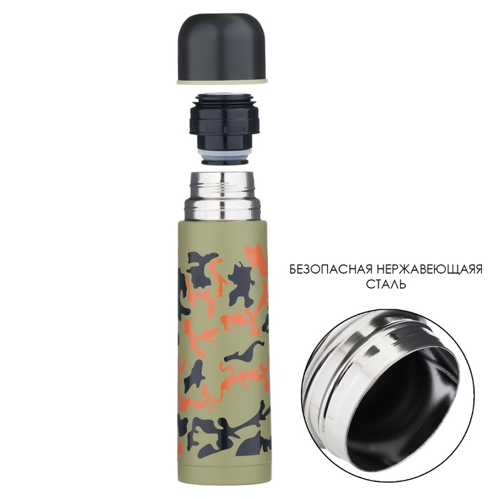 Термос, 500 мл, Гильза Камуфляж "Мастер К", с кружкой, сохраняет тепло до 8 ч