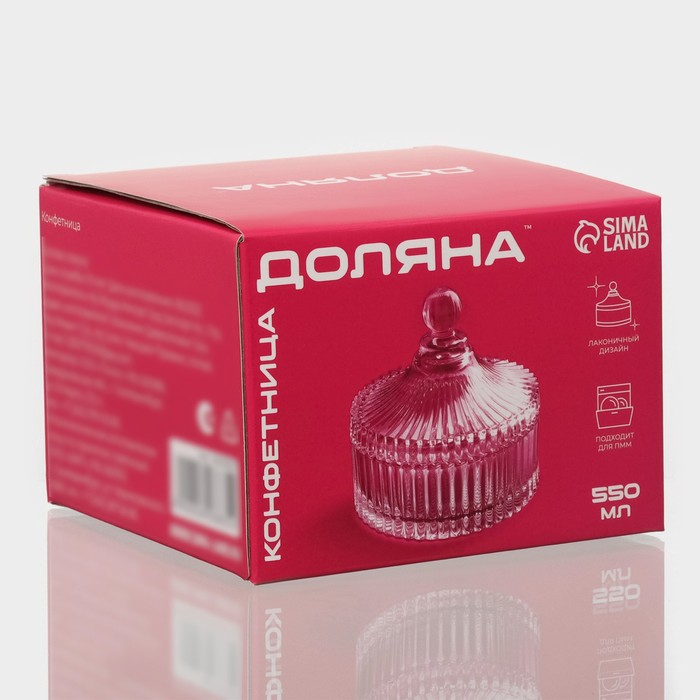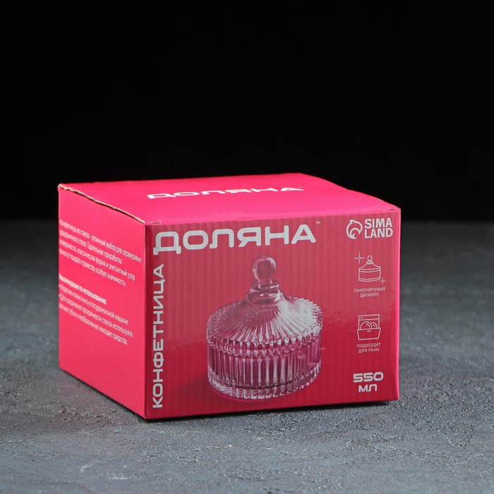 Конфетница стеклянная с крышкой Доляна «Царская», 550 мл, 13,5×15 см