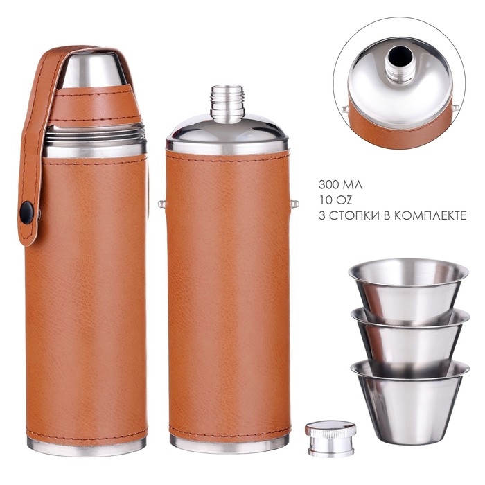Фляжка для алкоголя, нержавеющая сталь, подарочная, 300 мл, с 3 стопками по 30 мл