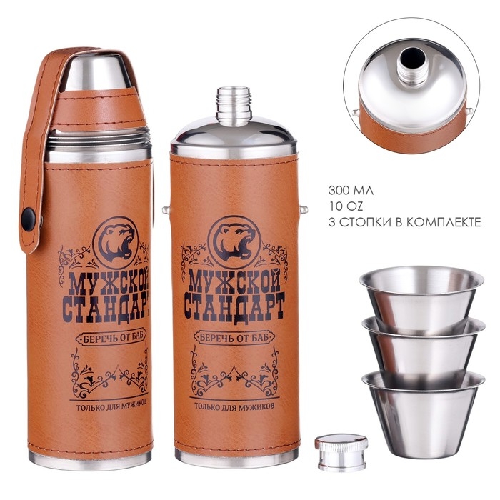 Фляжка для алкоголя "Мужской стандарт", нержавеющая сталь, 300 мл, 3 стопки по 30 мл