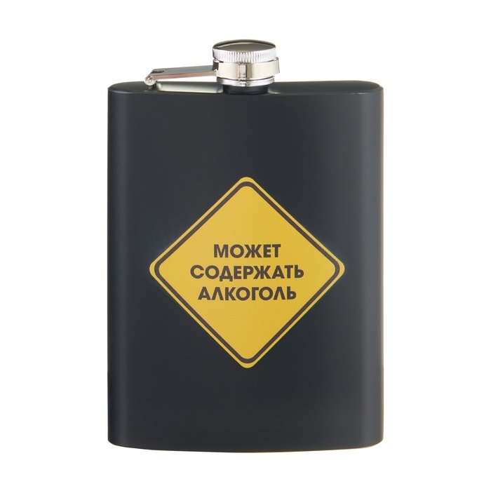 Фляжка для алкоголя "Может содержать алкоголь", нержавеющая сталь, 240 мл, 8 oz