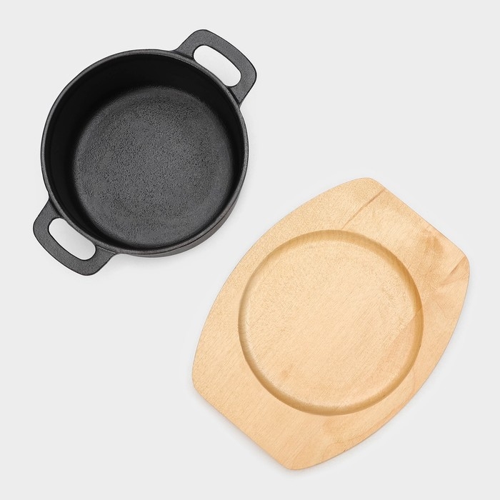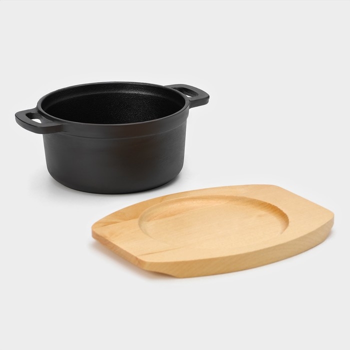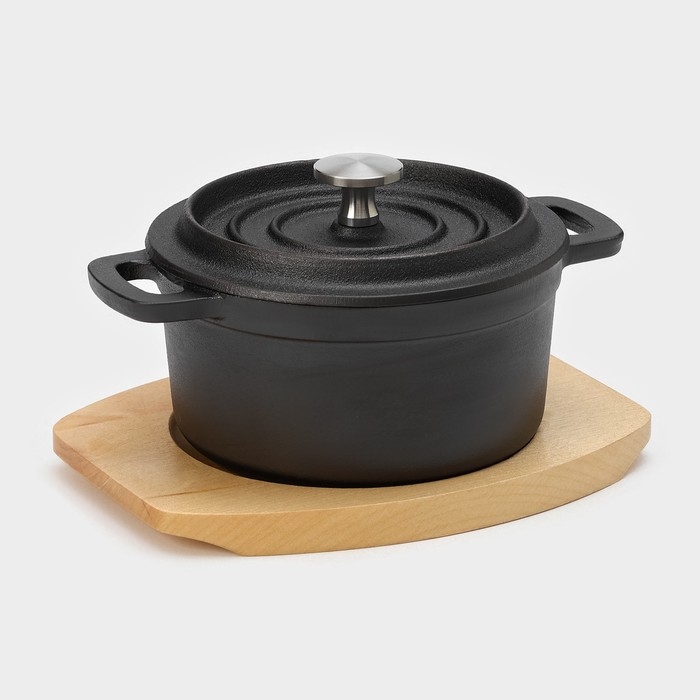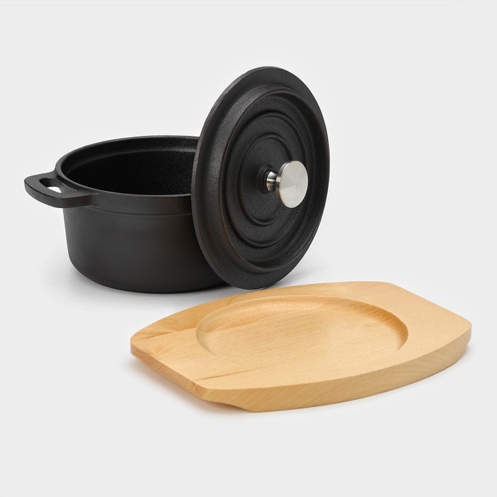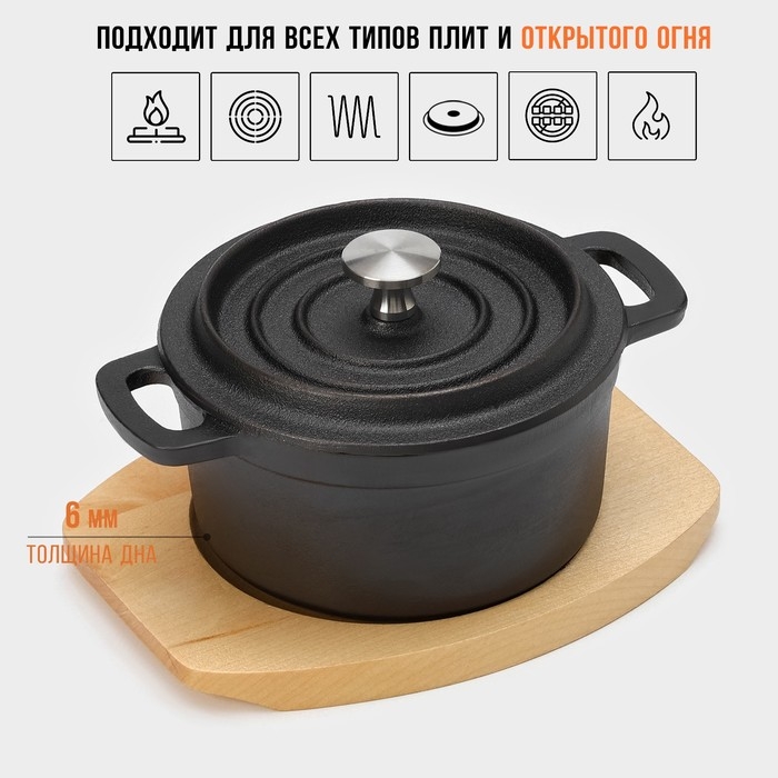 Кастрюля чугунная с крышкой Magma «Хотан», 750 мл, 18,6×14×7 см, индукция, цвет чёрный
