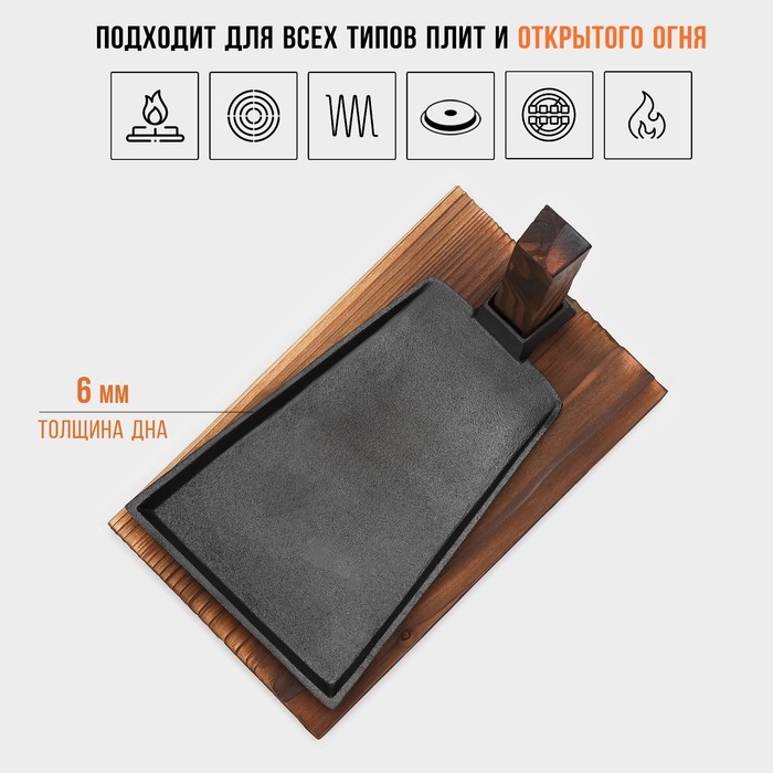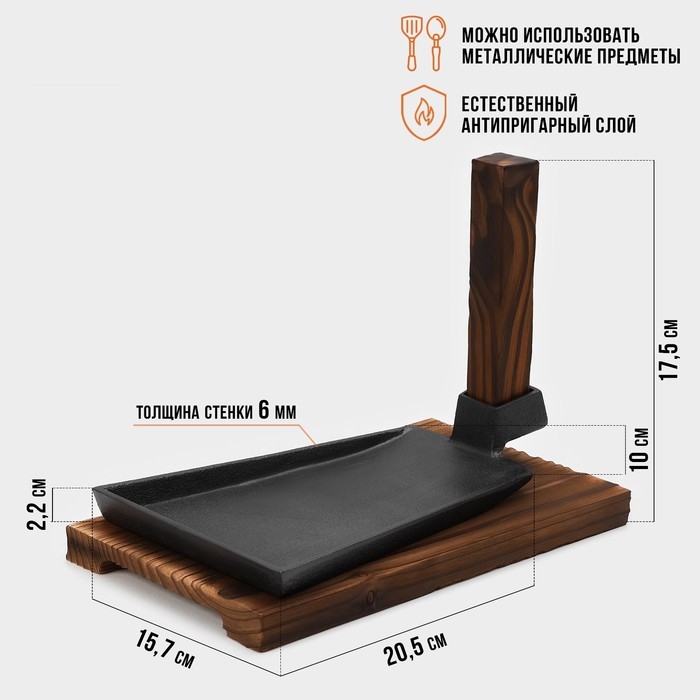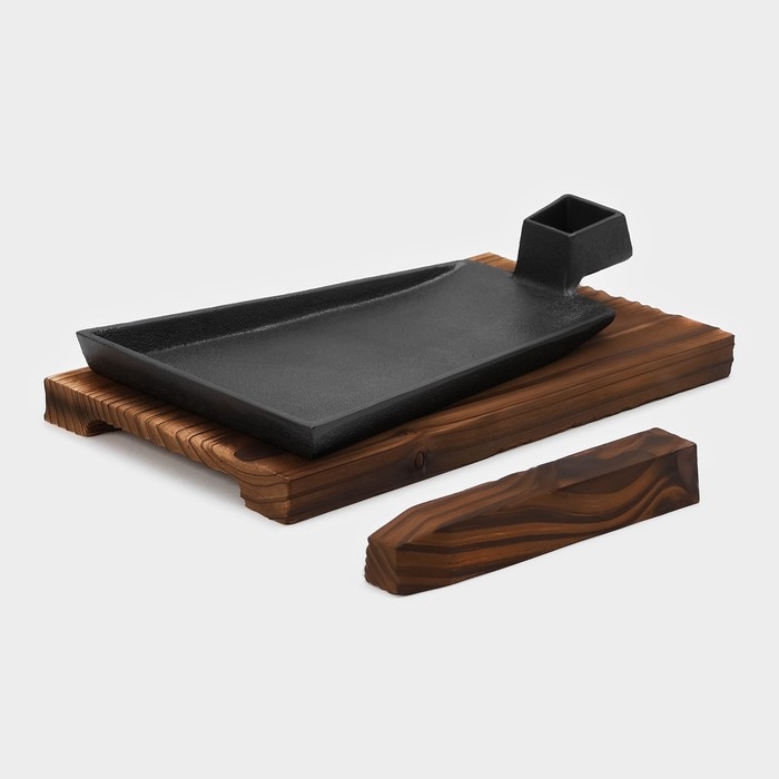 Сковорода чугунная Magma «Вунгтау», 24×15,3×2,2 см, на деревянной подставке