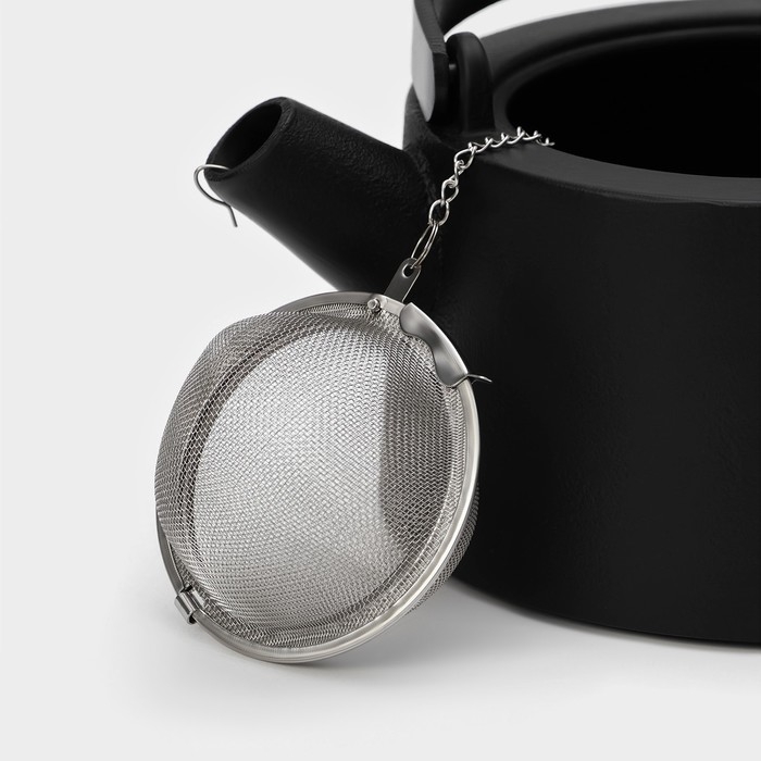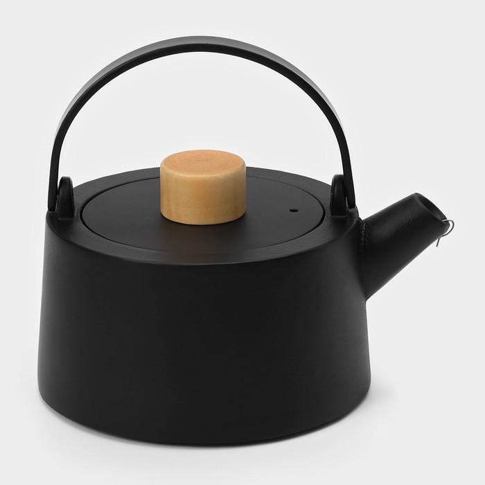 Чайник для плиты с эмалированным покрытием внутри Magma «Сайгон», 1,1 л, чугун, с ситом, индукция, цвет чёрный