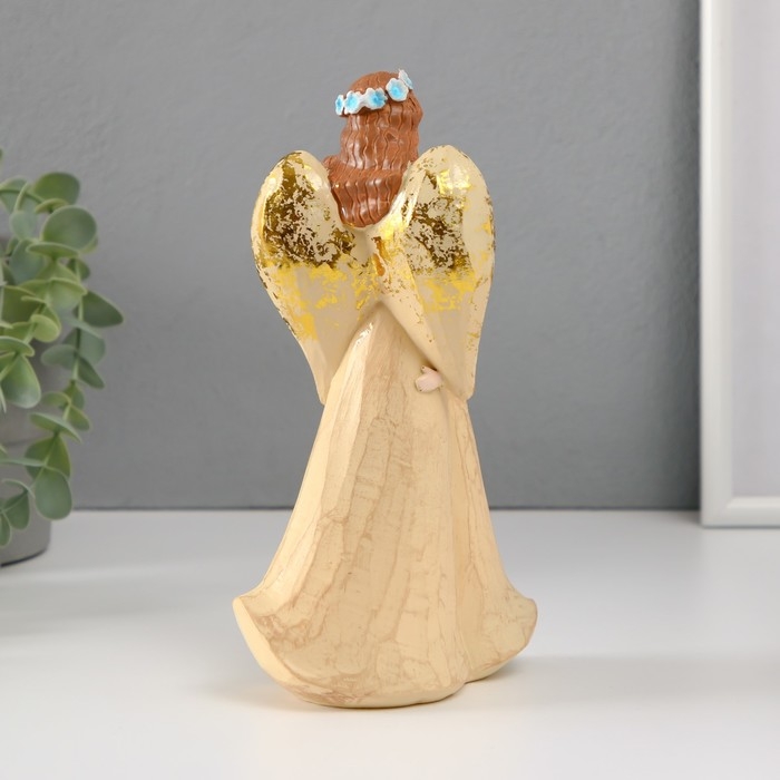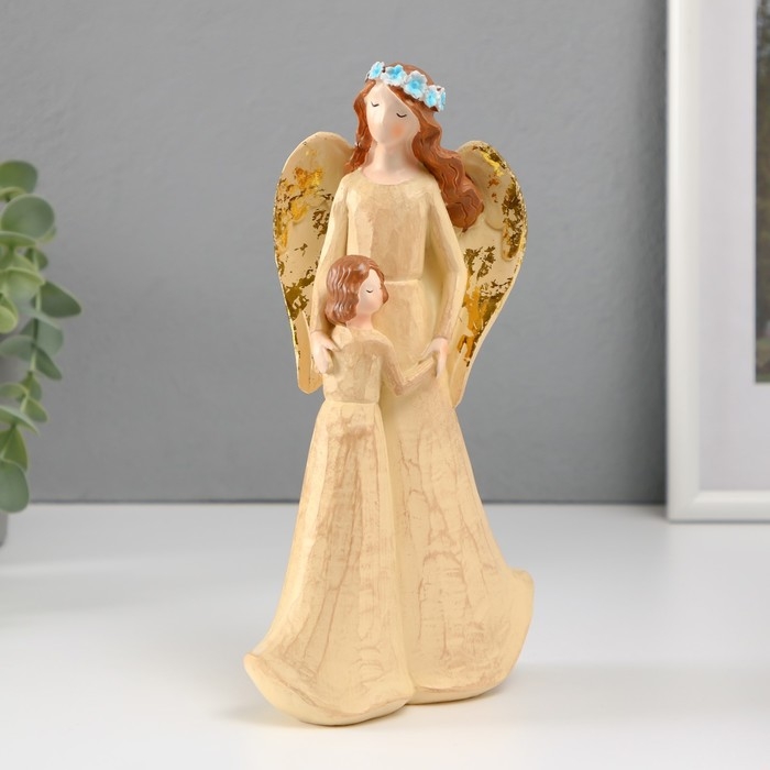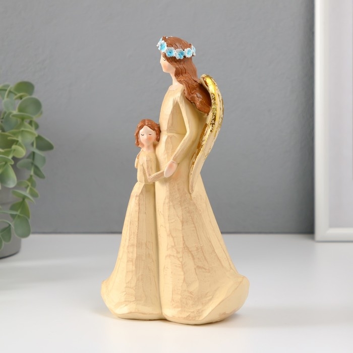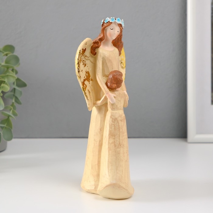 Сувенир полистоун "Девушка-ангел в голубом венке с ребенком" 6х12х20,5 см