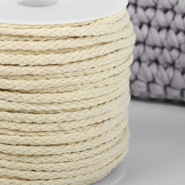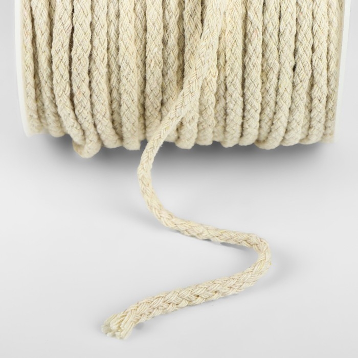 Шнур для плетения, хлопок, d = 4 мм, 50 ± 1 м, без сердечника, цвет белый
