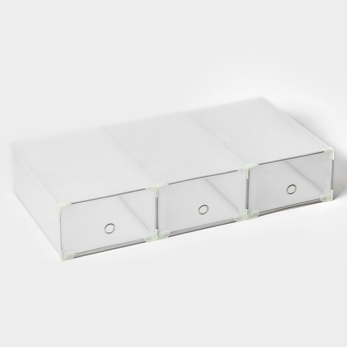 Коробка для хранения обуви выдвижная Доляна Large size, 21×33,5×12 см, 3 шт, цвет белый
