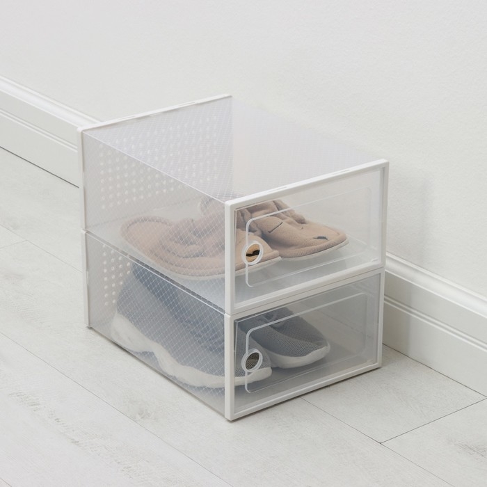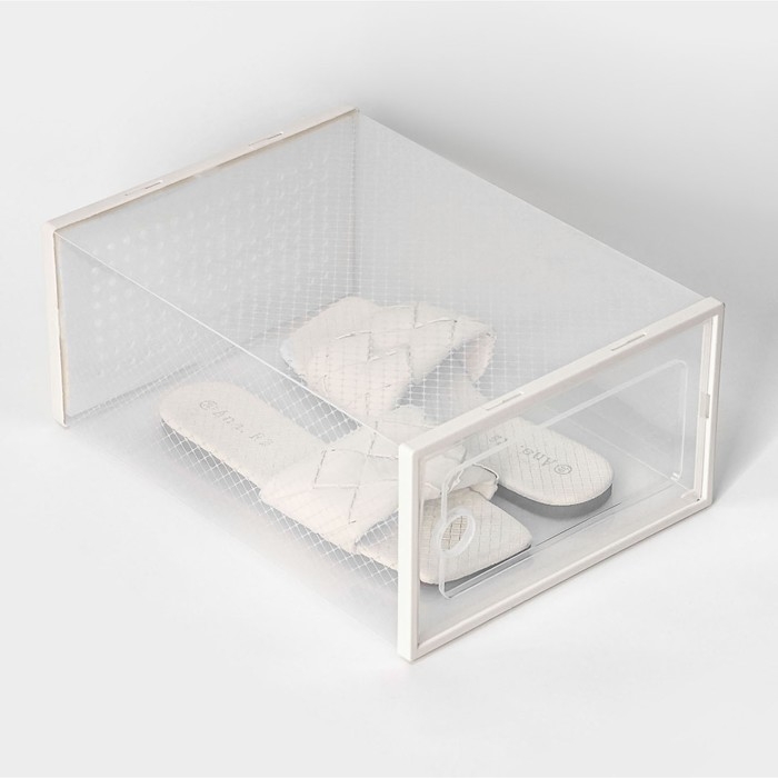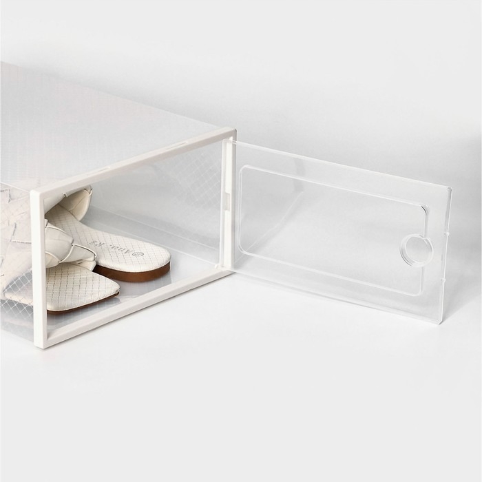 Коробка для хранения обуви выдвижная Доляна Large size, 22×34×13 см, цвет белый