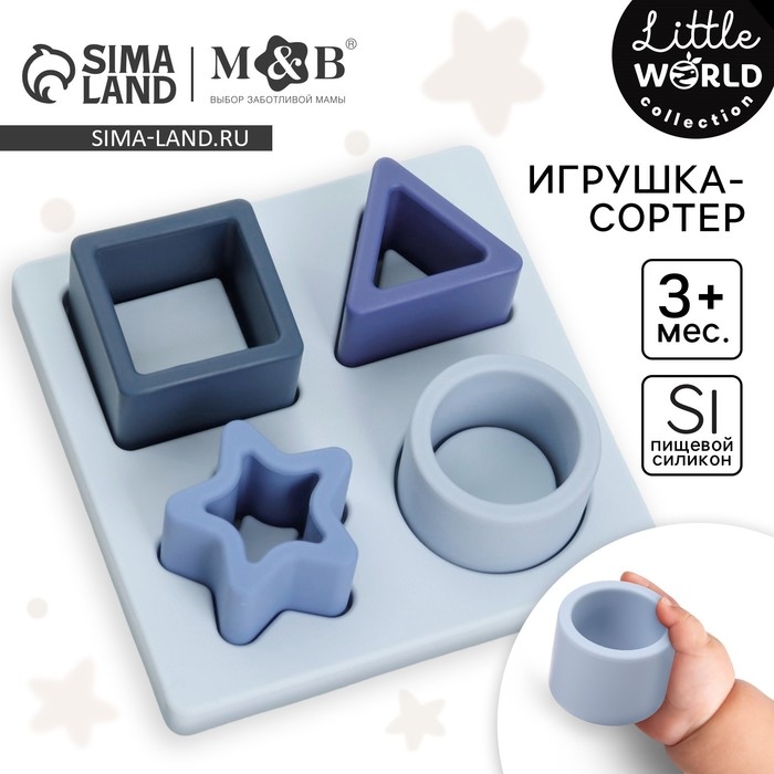 Развивающая игрушка - сортер «Изучаем фигуры», пищевой силикон, цвет голубой, Mum&Baby