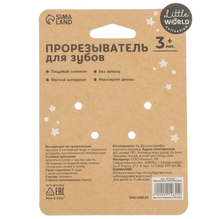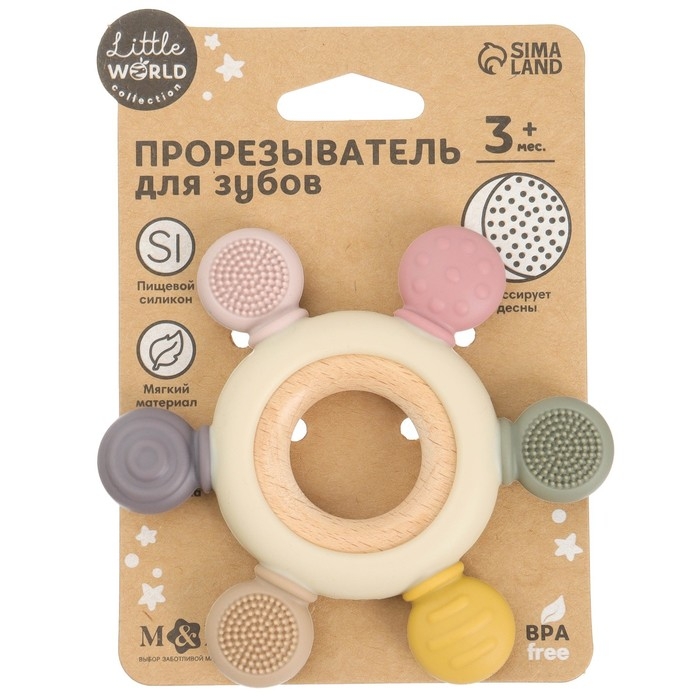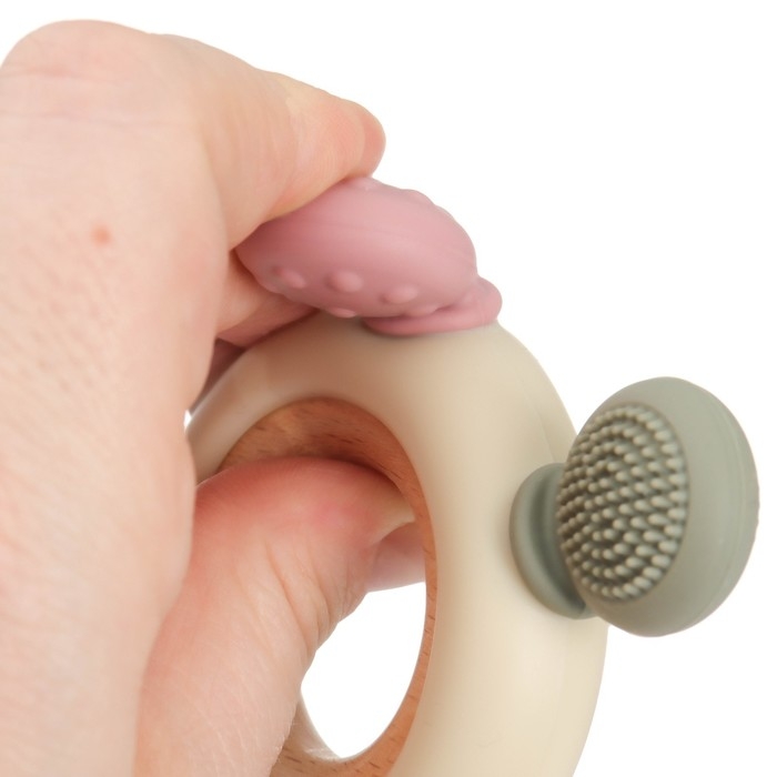 Прорезыватель снимает неприятные ощущения у малыша в период появления первых зубов. Также изделие подготовит ребёнка к процессу жевания, поспособствует формированию правильного прикуса и развитию мелкой моторики рук.