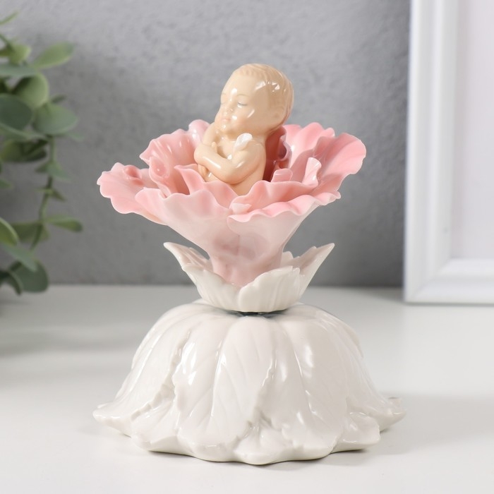 Сувенир керамика музыкальный "Малыш спит в распустившемся цветке" 10,5х10х13 см