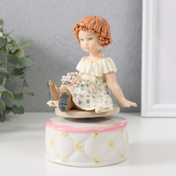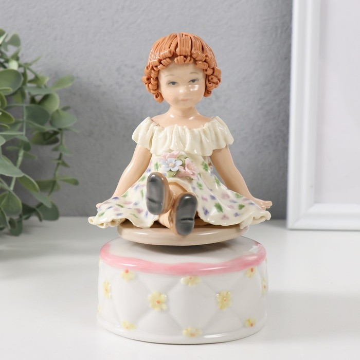 Сувенир керамика музыкальный "Малышка в цветочном платьице, сидит" 9х10х14 см