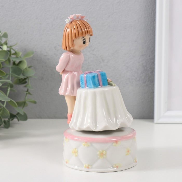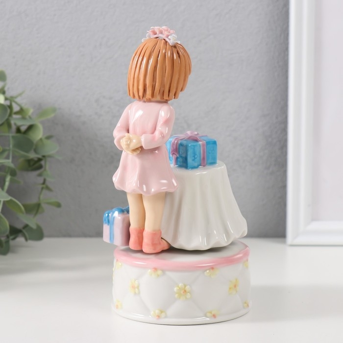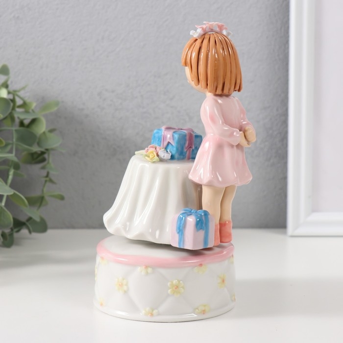 Сувенир керамика музыкальный "Девочка у столика с подарками" 9х9,5х17,5 см