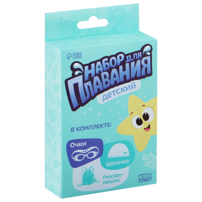 Набор для плавания детский ONLYTOP «Морской мир»: шапочка, очки, мешок