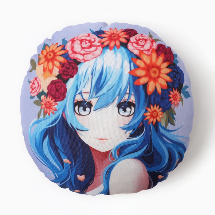 Подушка декоративная круглая Этель "Девушка с цветами" d=30 см, габардин, 100% п/э