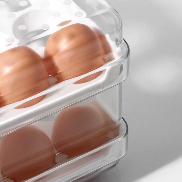 Как сэкономить место в холодильнике и избавиться от лишнего шума? Приобрести наш контейнер для хранения яиц в холодильнике. Органайзер для холодильника имеет 2 уровня, общей ёмкостью – 40 яиц.