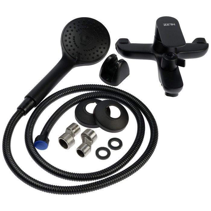 Смеситель для ванны ZEIN Z3852, однорычажный, душевой набор, лейка 5 режимов, черный