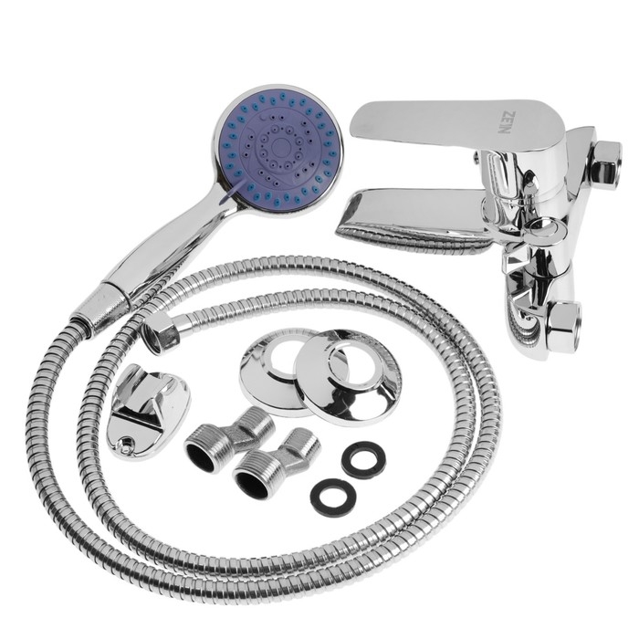 Смеситель для ванны ZEIN Z3854, однорычажный, душевой набор, лейка 5 режимов, хром