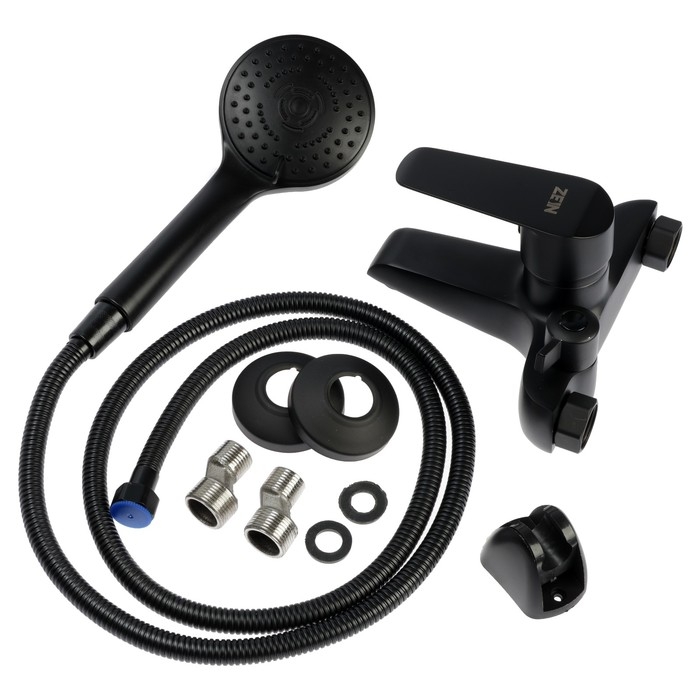 Смеситель для ванны ZEIN Z3855, однорычажный, душевой набор, лейка 5 режимов, черный