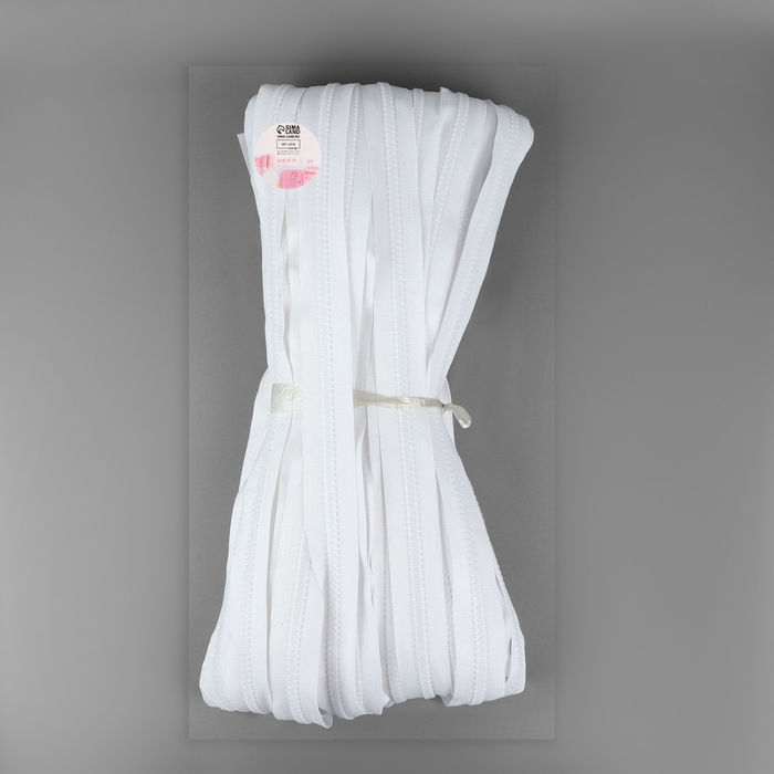 Набор: рулонная молния «Спираль» №3, 10 м, 20 бегунков, 40 верхних ограничителей, 20 нижних ограничителей, цвет белый