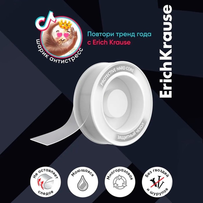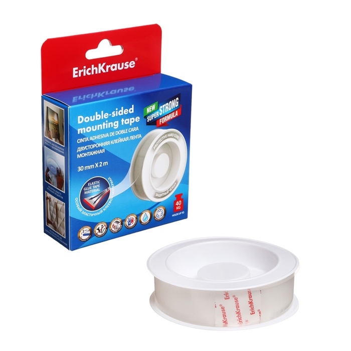 Двусторонняя клейкая лента монтажная ErichKrause, прозрачная, 1ммх30ммх2м