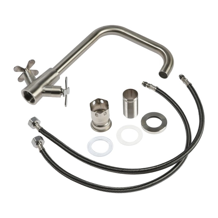 Смеситель имеет высокий изогнутый излив, который обеспечивает удобство при наполнении и промывке кастрюль, кувшинов и другой крупногабаритной посуды.