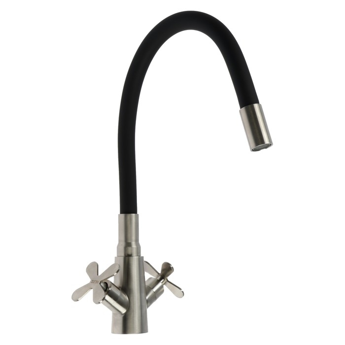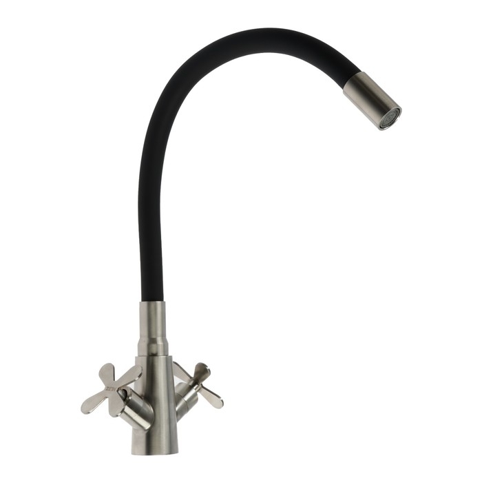 Смеситель для кухни ZEIN Z3730, двухвентильный, черный гибкий излив, корпус сатин